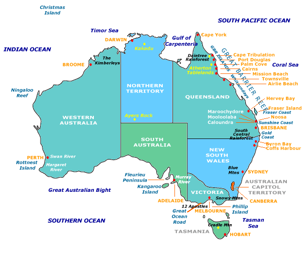 paradicsoma", Brisbane, Cairns, a Nagy Korallzátony, az